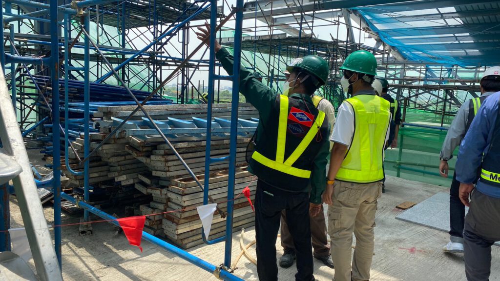 การรถไฟฟ้าขนส่งมวลชน แห่งประเทศไทย (รฟม.) โดยคณะกรรมการความปลอดภัย อาชีวอนามัย และสภาพแวดล้อมในการทำงาน (คปอ.) นำคณะเจ้าหน้าที่ตรวจติดตามงานด้านอาชีวอนามัย และความปลอดภัยในการก่อสร้างของโครงการรถไฟฟ้าสายสีชมพู ช่วงแคราย – มีนบุรี ตั้งแต่บริเวณ สถานีแคราย (PK02) สถานีสนามบินน้ำ (PK03) และสถานีสามัคคี (PK 04) เพื่อตรวจสอบการปฏิบัติงานก่อสร้างให้เป็นไปตามมาตรการความปลอดภัย และตรวจสอบอุปกรณ์ต่างๆ ให้มีความพร้อมสมบูรณ์ในการใช้งานอย่างปลอดภัยอยู่เสมอ