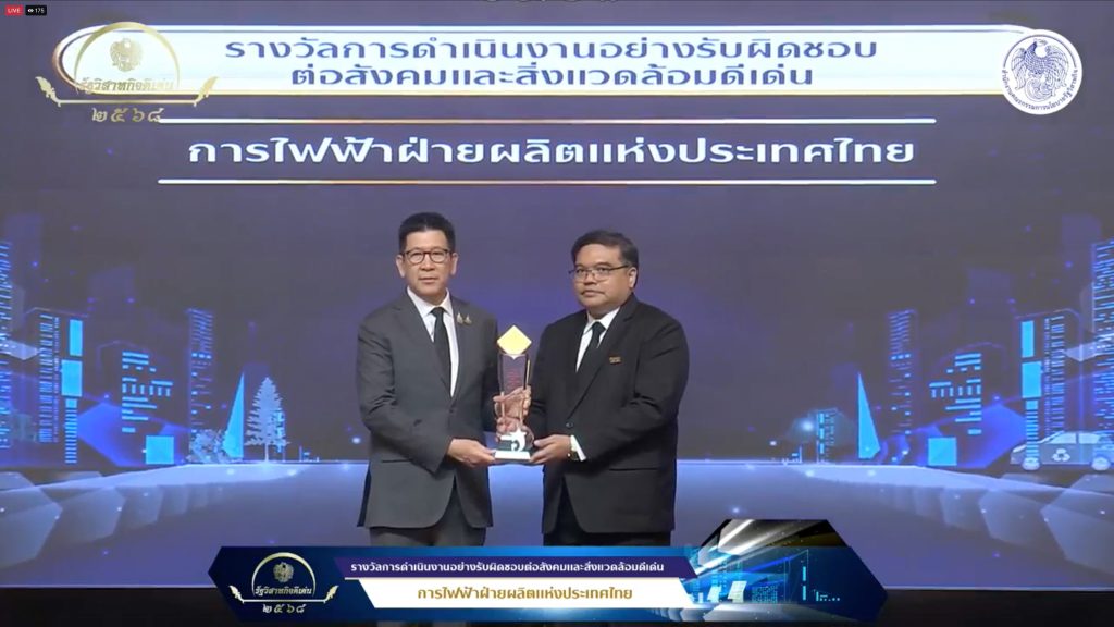 โดย กฟผ. ได้รับรางวัลรัฐวิสาหกิจดีเด่นประจำปี 2568 จำนวน 5 รางวัล ประกอบด้วย