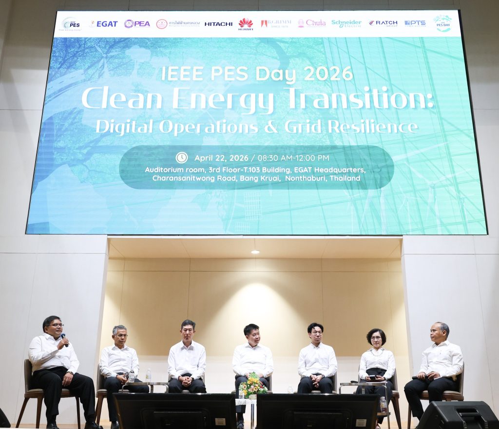 การไฟฟ้าฝ่ายผลิตแห่งประเทศไทย (กฟผ.) ร่วมกับ สมาคมไฟฟ้าและพลังงานไอทริปเปิลอี (ประเทศไทย) จัดงาน “IEEE PES Day 2026” ภายใต้แนวคิด “การเปลี่ยนผ่านพลังงานสะอาด : การดำเนินงานทางด้านดิจิทัล และความยืดหยุ่นของโครงข่ายไฟฟ้า (Clean Energy Transition: Digital Operations & Grid Resilience)” เพื่อแลกเปลี่ยนองค์ความรู้ด้านเทคโนโลยีดิจิทัลในการบริหารจัดการและเสริมเสถียรภาพโครงข่ายไฟฟ้า ผลักดันการใช้พลังงานสะอาดสู่เป้าหมาย Net Zero
