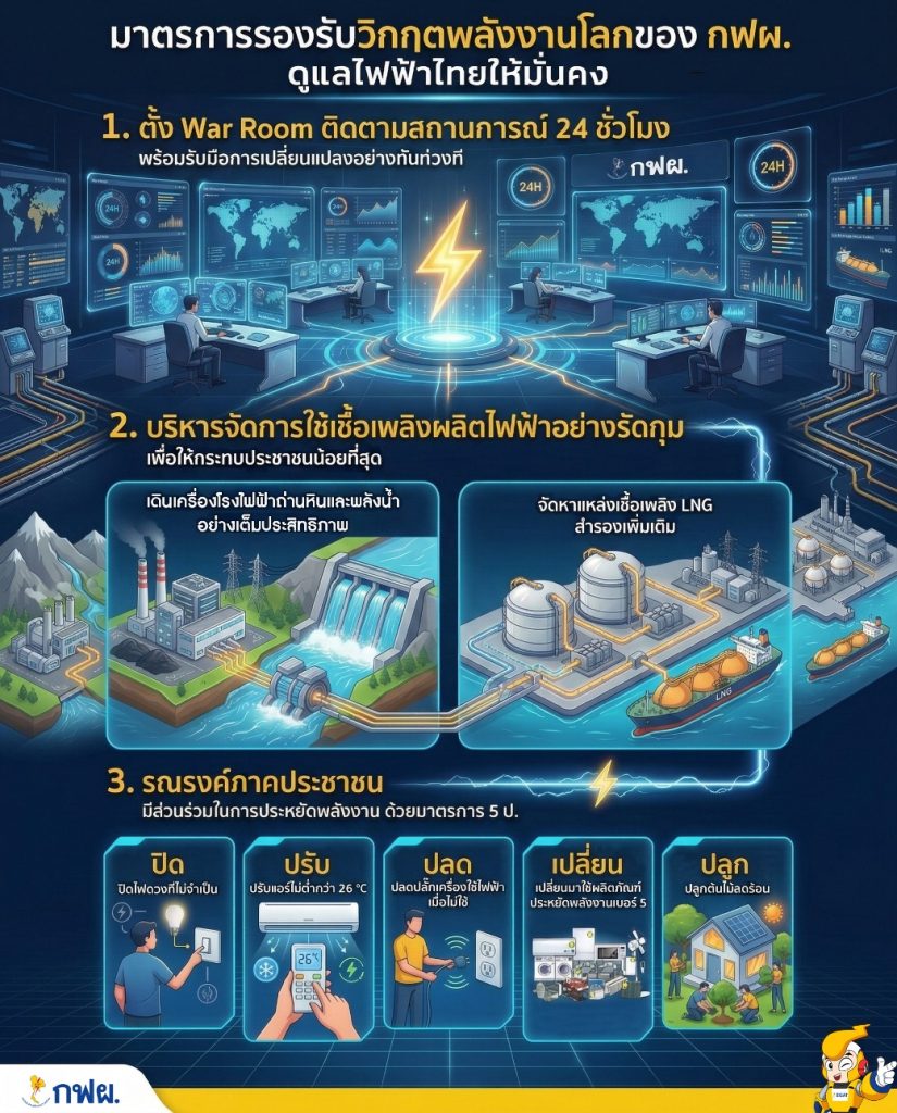 จากการเดินเครื่องโรงไฟฟ้าในประเทศเต็มกำลัง การเตรียมความพร้อมของกำลังผลิตสำรอง การตั้ง War Room บริหารสถานการณ์ ไปจนถึงการผลักดันมาตรการประหยัดพลังงาน ล้วนสะท้อนถึงความพยายามในการรักษาสมดุลระหว่าง “ความมั่นคง” และ “ความสามารถในการเข้าถึงพลังงานในราคาที่เหมาะสม”