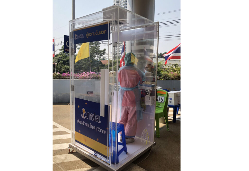 นายบุญญนิตย์ วงศ์รักมิตร ผู้ว่าการการไฟฟ้าฝ่ายผลิตแห่งประเทศไทย (กฟผ.) เปิดเผยว่า พนักงานจิตอาสา กฟผ. ได้ผลิตตู้ตรวจโควิดมอบให้สถานพยาบาลต่าง ๆ ได้ใช้งาน ตั้งแต่สถานการณ์เชื้อไวรัสโคโรน่า-19 (โควิด-19) เริ่มระบาดเมื่อปีที่แล้วจนถึงปัจจุบันเป็นจำนวนถึง 500 ตู้ เพื่อสนับสนุนการทำงานของบุคลากรทางการแพทย์ในการตรวจคัดกรองหาเชื้อไวรัสโควิด-19 ทั้งโรงพยาบาล หน่วยงานสาธารณสุข และโรงพยาบาลสนามทั่วประเทศ เนื่องจากสถานการณ์ยังคงทวีความรุนแรงขึ้น