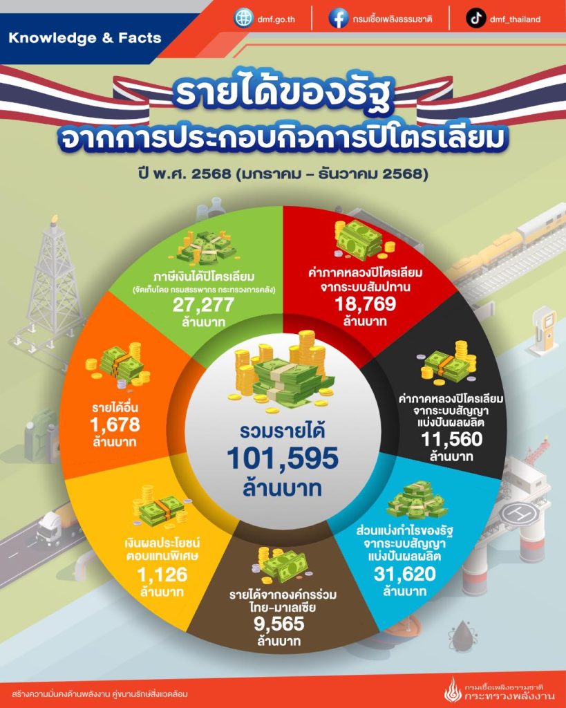 กรมเชื้อเพลิงธรรมชาติ โชว์รายได้รัฐจากกิจการปิโตรเลียม ปี2568 อยู่ที่  101,595 ลบ.
