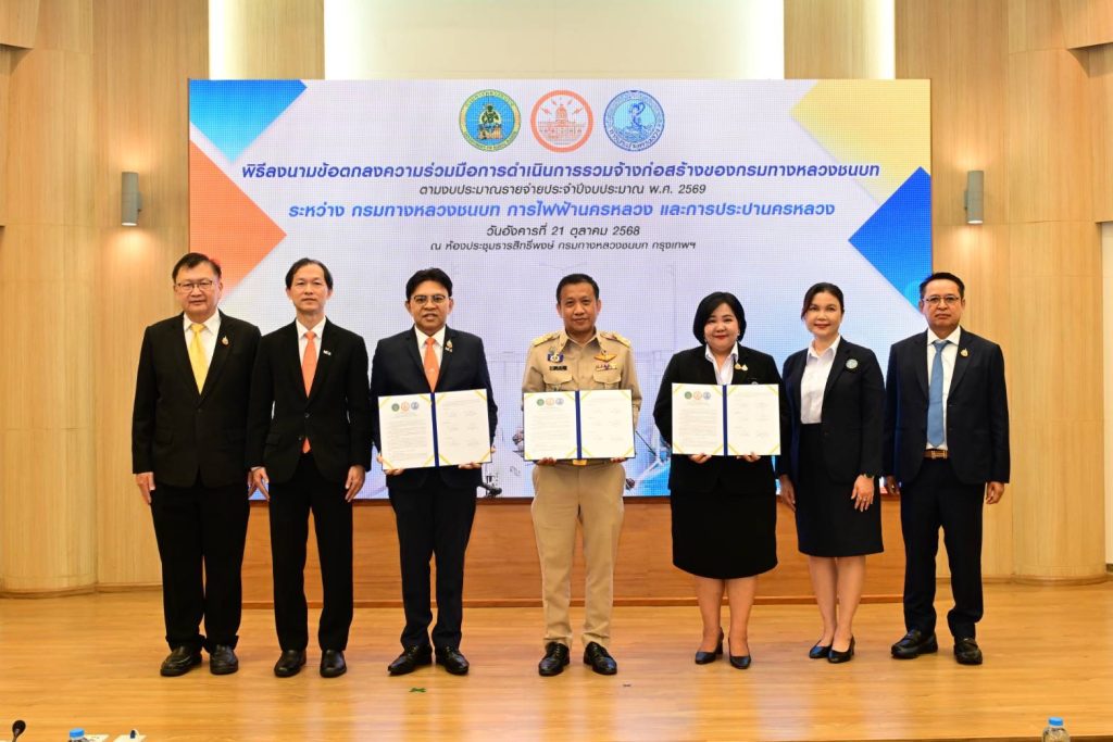 ผู้สื่อข่าวรายงานว่า กรมทางหลวงชนบท (ทช.) ได้มีการจัดงานบันทึกข้อตกลงความร่วมมือการดำเนินการรวมจ้างก่อสร้างของกรมทางหลวงชนบทตามงบประมาณรายจ่ายประจำปี 2569 ซึ่งได้ทำการลงนามในบันทึกข้อตกลงร่วมกันระหว่าง ทช. สังกัดกระทรวงคมนาคม และการไฟฟ้านครหลวง (กฟน.) การประปานครหลวง (กปน.) สังกัดกระทรวงมหาดไทย