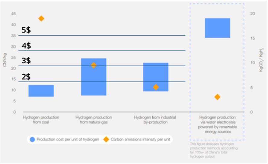 ดร.สุมิตรา ได้ให้ข้อมูลเพิ่มเติมว่า จากการวิจัยของ ENTEC พบว่าต้นทุนการผลิตไฮโดรเจนแต่ละประเภท ขึ้นอยู่กับพลังงานที่ใช้ ถ้าเป็นไฮโดรเจนสีเทา (Grey Hydrogen) ซึ่งผลิตจากเชื้อเพลิงฟอสซิลที่ปล่อยคาร์บอนไดออกไซด์ ต้นทุนประมาณ 1 – 2 เหรียญสหรัฐต่อกิโลกรัม ไฮโดรเจนสีน้ำเงิน (Blue Hydrogen) ต้นทุนอยู่ที่ 1.5 – 3.5 เหรียญสหรัฐต่อกิโลกรัม และไฮโดรเจนสีเขียว (Green Hydrogen) ที่มาจากพลังงานสะอาด ต้นทุนจะสูงถึง 5 – 6 เหรียญสหรัฐต่อกิโลกรัม ซึ่งราคาต้นทุนไฮโดรเจนที่ยังค่อนข้างสูงเป็นสาเหตุให้ยังไม่มีการนำไฮโดรเจนไปใช้ในเชิงพาณิชย์อย่างแพร่หลาย