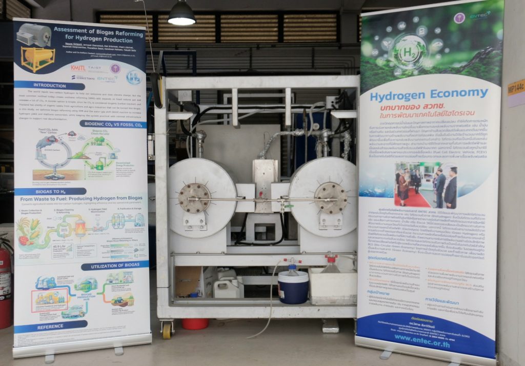 ดร.สุมิตรา จรสโรจน์กุล ผู้อำนวยการศูนย์เทคโนโลยีพลังงานแห่งชาติ (ENTEC) เปิดเผยว่า ENTEC มีงานวิจัยเรื่องพลังงานไฮโดรเจน ในวิธีการต่างๆ คือ 1. การผลิตไบโอไฮโดรเจน ที่มาจากก๊าซชีวภาพ หรือ ไบโอแก๊ส (Biogas) โดยมีองค์ประกอบสำคัญ คือแก๊ส มีเทน (CH4) ที่มีคาร์บอนไดออกไซด์และกำมะถันปนอยู่ ซึ่งในงานวิจัยจะต้องแยกเอาคาร์บอนไดออกไซด์และกำมะถันไปเก็บไว้ เพื่อให้เหลือแค่แก๊สมีเทน แล้วเอามาป้อนเข้าเตาปฏิกรณ์แยกออกมาให้ได้เป็นไฮโดรเจน เรียกว่า “ไบโอไฮโดรเจน”