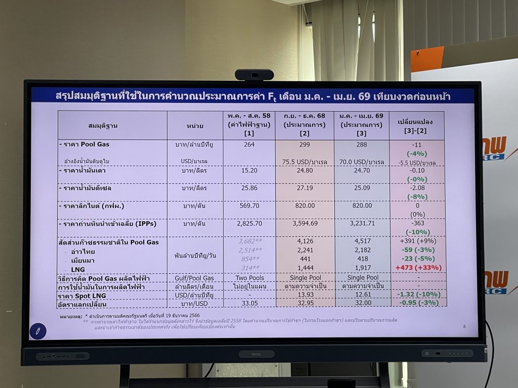ดร.พูลพัฒน์ ลีสมบัติไพบูลย์ เลขาธิการสำนักงานคณะกรรมการกำกับกิจการพลังงาน (สำนักงาน กกพ.)ในฐานะโฆษกคณะกรรมการกำกับกิจการพลังงาน (กกพ.) เปิดเผยว่า ในการประชุม กกพ. ครั้งที่ 42/2568 (ครั้งที่ 984) เมื่อวันพุธที่ 5 พฤศจิกายน 2568 มีมติให้เปิดรับฟังความคิดเห็นค่าไฟฟ้าผันแปร (ค่าเอฟที) สำหรับการเรียกเก็บค่าไฟฟ้าสำหรับงวด ม.ค. – เม.ย. 2569 เป็น 2 กรณี โดยเรียกเก็บที่ 4.58 บาทต่อหน่วย และ 3.94 บาทต่อหน่วย