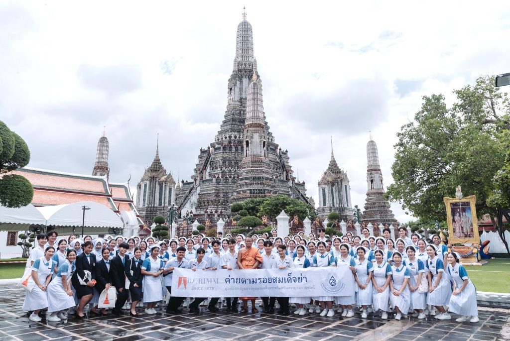 พร้อมกันนี้ มูลนิธิฯ ยังมีการเตรียมความพร้อมให้นักศึกษาที่จะออกไปปฏิบัติงานเมื่อจบการศึกษาโดยร่วมกับ บี.กริม จัดอบรม “ค่ายตามรอยสมเด็จย่า” รุ่นที่ 7 สำหรับกลุ่มนักศึกษาพยาบาล ของวิทยาลัยพยาบาลบรมราชชนนีที่ได้รับ ”ทุนการศึกษาสมเด็จย่า 90” จำนวน 120 คน เมื่อวันที่ 14 – 16 ตุลาคม 2568 ณ ศูนย์สัมมนาและฝึกอบรม มหาวิทยาลัยสุโขทัยธรรมาธิราช จังหวัดนนทบุรี เพื่อให้ความรู้เกี่ยวกับพระราชประวัติและพระราชกรณียกิจของสมเด็จพระศรีนครินทราบรมราชชนนี ตลอดจนการทัศนศึกษาสถานที่สำคัญ เช่น อุทยานเฉลิมพระเกียรติสมเด็จพระศรีนครินทราบรมราชชนนี พิพิธภัณฑ์ศิริราชพิมุขสถาน พิพิธภัณฑ์การแพทย์ศิริราช และวัดอรุณราชวรารามราชวรมหาวิหาร โดยมีเป้าหมายเพื่อให้นักศึกษาทุนพยาบาล มีความรู้ความเข้าใจในแนวคิดและแนวปฏิบัติตามอุดมการณ์การพยาบาลของสมเด็จย่า มีความรักและความภาคภูมิใจในวิชาชีพการพยาบาล และยึดมั่นวิชาชีพพยาบาลตามรอยสมเด็จย่า โดยปัจจุบันมีนักศึกษาเข้ารับการอบรม “ค่ายตามรอยสมเด็จย่า” แล้วจำนวน 603 คน
