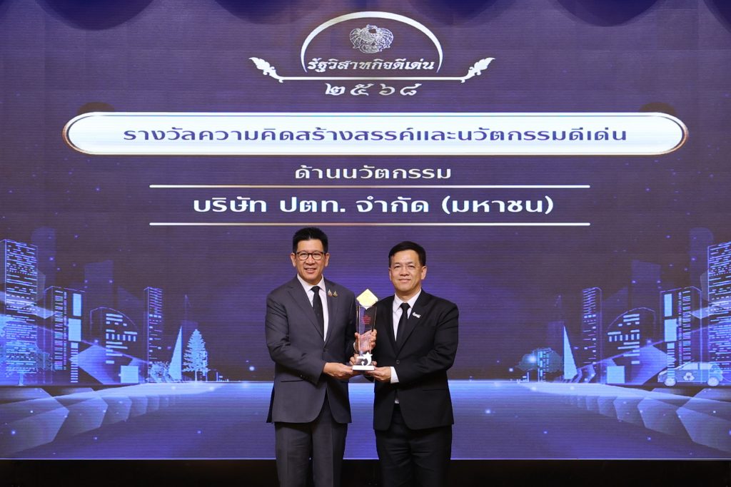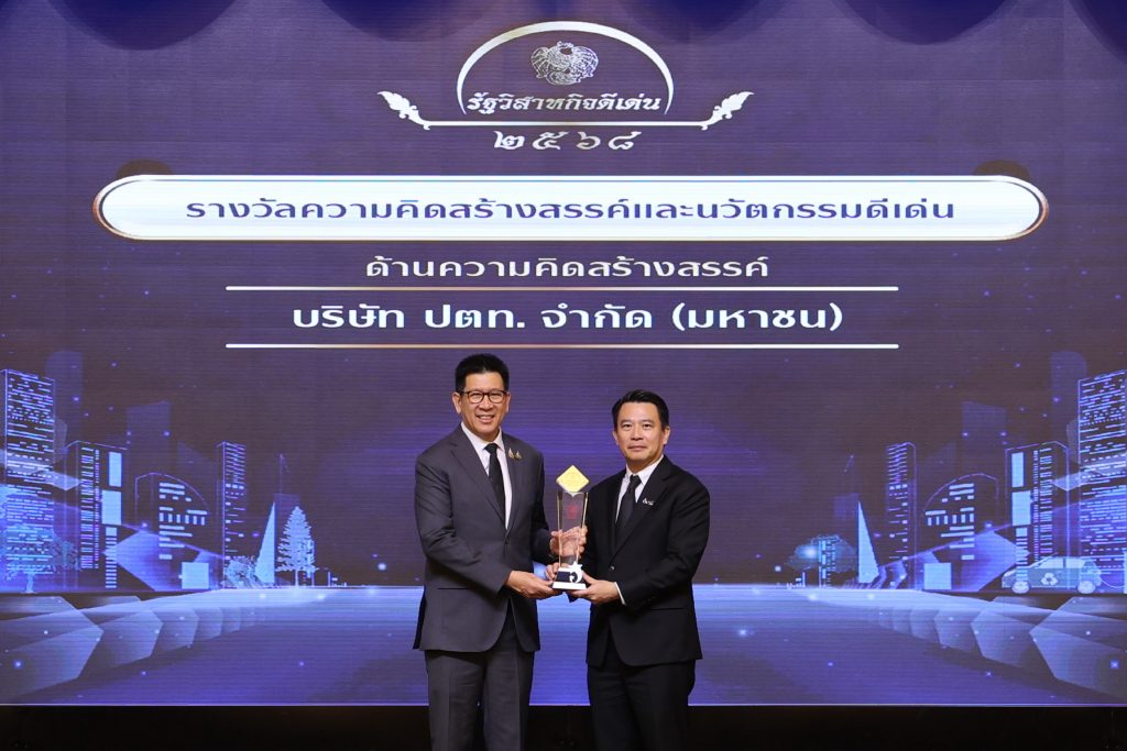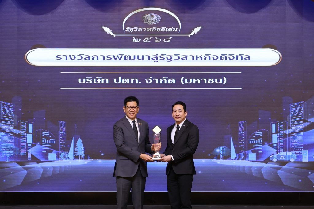 4. รางวัลการพัฒนาสู่รัฐวิสาหกิจดิจิทัลดีเด่น ปตท. ผลักดันนำเทคโนโลยีมาใช้ปรับกระบวนการทำงานและการบริหารจัดการองค์กร (Digital Transformation) เพื่อพัฒนาประสิทธิภาพ และให้เกิดการพัฒนา Use Cases สนับสนุนการดำเนินงาน รวมถึงวางแผนและปรับกลยุทธ์ในการดำเนินธุรกิจ พร้อมพัฒนาบุคลากรให้มีทักษะด้านเทคโนโลยีอย่างเหมาะสม เท่าทันต่อสถานการณ์โลก เพื่อสร้างมูลค่าเพิ่มและความสามารถในการแข่งขันให้กับองค์กร