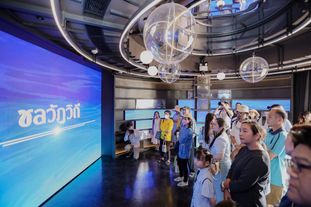 ห้องที่ 2 ชลธีร์ราชทรรศน์ มุมมองที่กว้างไกลในการพัฒนาแหล่งน้ำของพระราชาทรงสร้างปาฏิหาริย์ในการบูรณาการความร่วมมือจากทุกภาคส่วน โดยใช้ความรู้หลากหลายศาสตร์ ในการดูแลสายน้ำ เพื่อบรรเทาความทุกให้กับประชาชนชาวไทย
