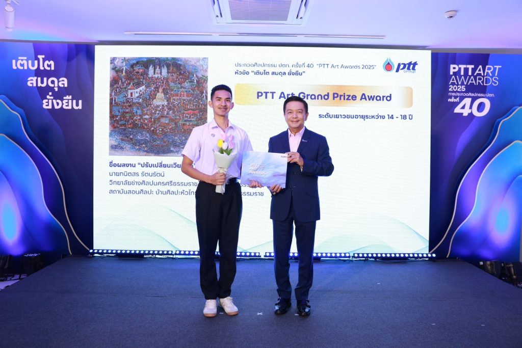 เมื่วันที่ 7 ตุลาคม 2568 ดร.คงกระพัน อินทรแจ้ง ประธานเจ้าหน้าที่บริหารและกรรมการผู้จัดการใหญ่ บริษัท ปตท.จำกัด (มหาชน) (ปตท.) เป็นประธานในพิธีมอบรางวัลแก่ผู้ชนะการประกวดศิลปกรรม ปตท. ครั้งที่ 40 “PTT Art Awards” จำนวน 40 รางวัล จากการคัดเลือกและตัดสิน โดยคณะกรรมการผู้ทรงคุณวุฒิด้านศิลปะในแขนงต่างๆ ซึ่งในปีนี้ มีศิลปินสนใจร่วมส่งผลงานเข้าประกวดในประเภทจิตรกรรม ประติมากรรม ภาพพิมพ์ สื่อผสม ดิจิทัลอาร์ต 2 มิติ และทัศนศิลป์อื่น ๆ รวมกันจำนวนมากกว่า 900 ชิ้น