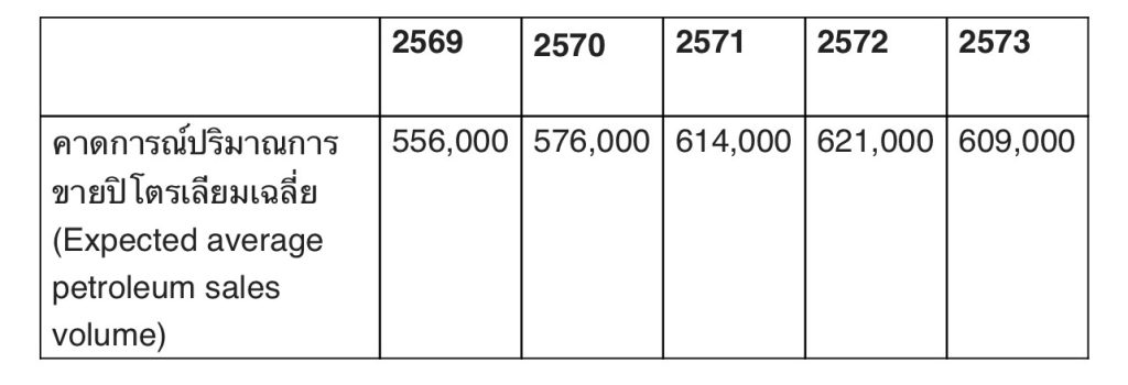 จากแผนงานดังกล่าว ปตท.สผ. ได้คาดการณ์ปริมาณการขายปิโตรเลียมเฉลี่ยต่อวัน (Expected average sales volume) จากโครงการปัจจุบัน ระหว่างปี 2569 – 2573 ดังรายละเอียดต่อไปนี้