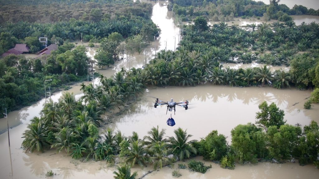 ในช่วงเวลาที่เกิดอุทกภัย ปตท.สผ. ได้ร่วมบรรเทาความเดือนร้อนให้กับผู้ประสบภัยอย่างเร่งด่วน โดยสนับสนุนเครื่องอุปโภคบริโภคต่าง ๆ เพื่อการยังชีพ เช่น อาหารแห้ง น้ำดื่ม และเครื่องใช้อื่น ๆ ลำเลียงไปกับเรือหลวงจักรีนฤเบศร รวมถึงสนับสนุนชุดเครื่องนอน ผ้าห่ม และเสื้อผ้า ให้แก่ศูนย์พักพิง มหาวิทยาลัยสงขลานครินทร์ นอกจากนี้ ในด้านการปฏิบัติงานเชิงเทคนิค ปตท.สผ. ได้ร่วมกับบริษัท เอไอ แอนด์ โรโบติกส์ เวนเจอร์ส จำกัด หรือ เออาร์วี ซึ่งเป็นบริษัทย่อย ส่งโดรนเพื่อการขนส่ง และโดรนเพื่อการสำรวจและเฝ้าระวัง พร้อมทั้งทีมผู้เชี่ยวชาญ เพื่อสนับสนุนภารกิจของศูนย์บรรเทาสาธารณภัย มณฑลทหารบกที่ 42 ให้สามารถเข้าถึงพื้นที่ที่ประสบปัญหาที่ยากต่อการเข้าถึงได้อย่างมีประสิทธิภาพมากยิ่งขึ้น