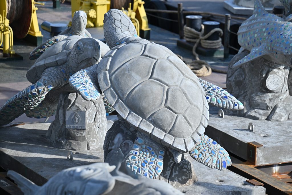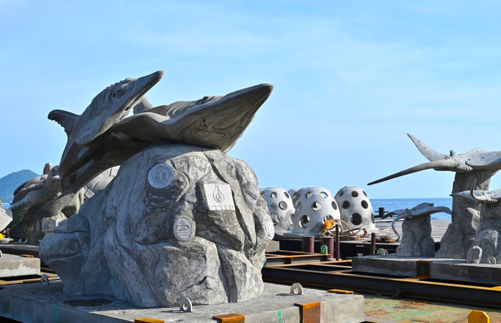 ลานประติมากรรมใต้ทะเล Ocean for Life ประกอบด้วยประติมากรรมรูปสัตว์ทะเลหายาก จำนวน 9 ชิ้น ได้แก่ คู่ตนุ กระเบนจุดฟ้า ครอบครัวเต่า ม้าน้ำ ฉลามวาฬ กระเบนนก ซุ้มเต่า ฉลามหูดำ และโรนัน แต่ละชิ้นมีความสูงเฉลี่ยประมาณ 2.5 เมตร นอกจากนี้ ยังมีปะการังเทียมรูปแบบใหม่ (Coral Ball) และปะการังเทียมแบบโดม ความสูงเฉลี่ยประมาณ 1-1.5 เมตร รวมทั้งหมด 93 ชิ้น ซึ่งทั้งหมดผลิตขึ้นจากวัสดุสำหรับทำปะการังเทียมที่มีความทนทานต่อการกัดกร่อนของน้ำทะเล และเป็นมิตรต่อสิ่งแวดล้อม สามารถเป็นที่อยู่อาศัยของสัตว์น้ำและสิ่งมีชีวิตใต้ทะเลได้อย่างปลอดภัย