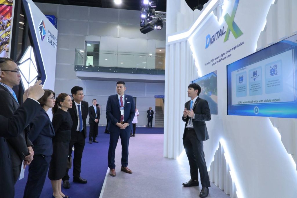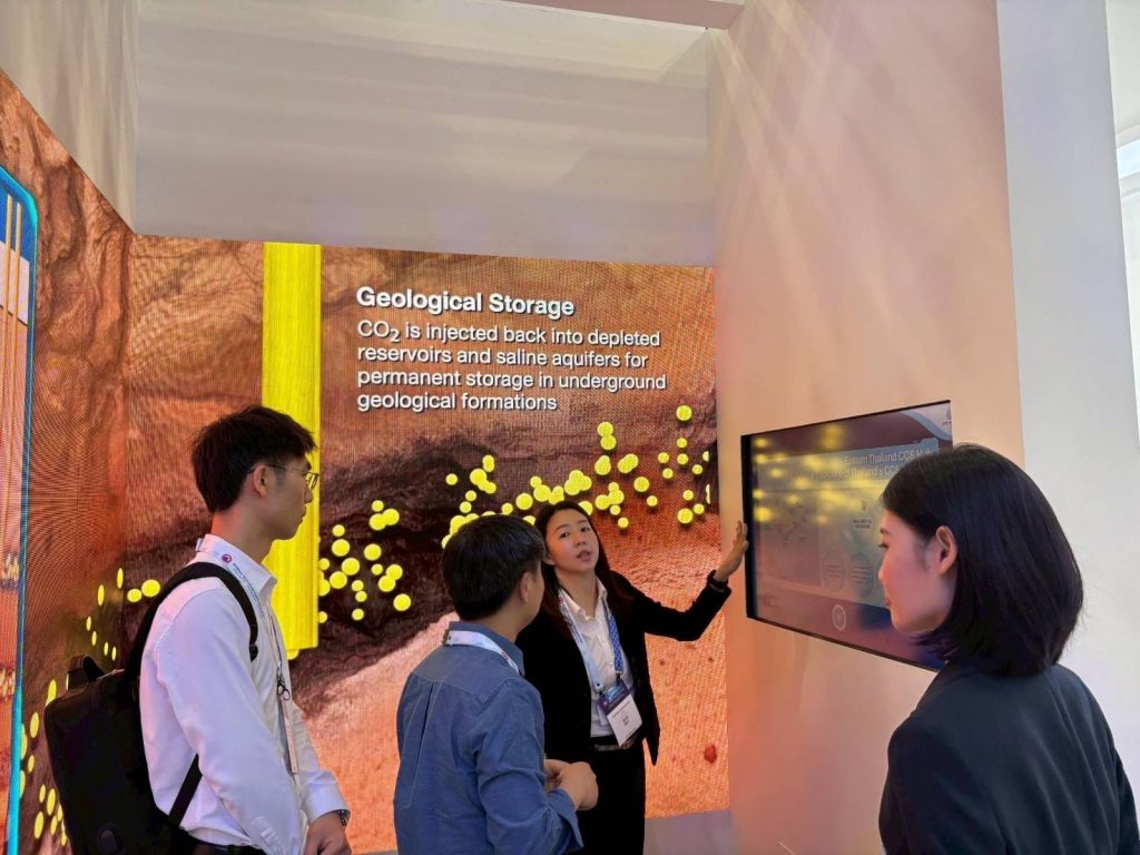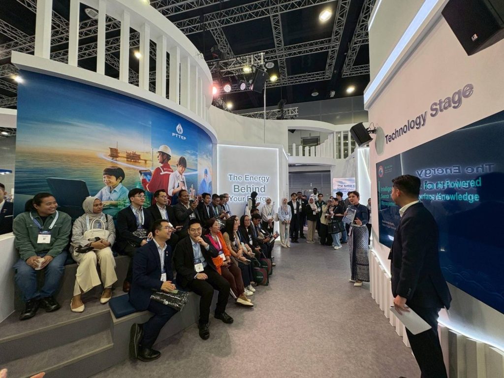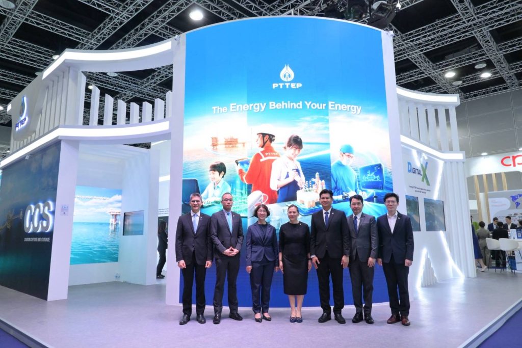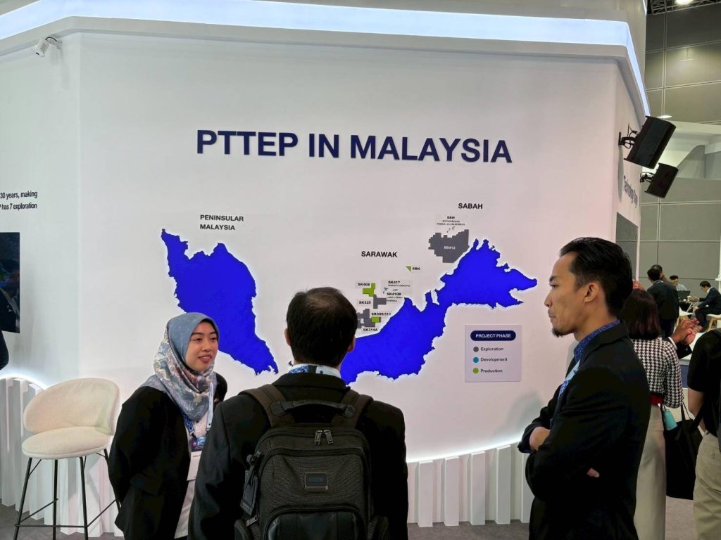 ในโอกาสนี้ นางสาวลดา ภู่มาศ เอกอัครราชทูต ณ กรุงกัวลาลัมเปอร์ ประเทศมาเลเซีย ได้ให้เกียรติเยี่ยมชมบูธนิทรรศการของ ปตท.สผ. ที่จัดแสดงเกี่ยวกับการดำเนินงานและยุทธศาสตร์การเติบโตของบริษัทซึ่งมีโครงการสำรวจและผลิตปิโตรเลียมกว่า 50 แห่ง ในกว่า 10 ประเทศ โดยเฉพาะในประเทศมาเลเซียซึ่งเป็นหนึ่งในฐานการลงทุนที่สำคัญของบริษัท รวมทั้งนำเสนอโครงการดักจับและกักเก็บก๊าซคาร์บอนไดออกไซด์ (Carbon Capture and Storage หรือ CCS) ที่แหล่งอาทิตย์ในอ่าวไทย ซึ่งจะช่วยลดการปล่อยก๊าซเรือนกระจกจากกระบวนการผลิตปิโตรเลียมและสนับสนุนเป้าหมายการปล่อยก๊าซเรือนกระจกสุทธิเป็นศูนย์อย่างเป็นรูปธรรม นอกจากนี้ ยังจัดแสดงนวัตกรรมดิจิทัลภายใต้โครงการ DigitalX ซึ่งช่วยสนับสนุนกระบวนการสำรวจและผลิตปิโตรเลียม เช่น DORA (Drilling Operation Real-Time Analyses) ระบบการวิเคราะห์การเจาะหลุมปิโตรเลียมแบบเรียลไทม์ และ IOCC (Integrated Operations Control Center) ศูนย์ควบคุมการปฏิบัติงานที่เชื่อมโยงข้อมูลการผลิตจากแหล่งก๊าซธรรมชาติในอ่าวไทย โดยเทคโนโลยีดังกล่าวจะช่วยยกระดับและเพิ่มประสิทธิภาพ ลดระยะเวลาและค่าใช้จ่าย รวมทั้งเพิ่มความปลอดภัยในการดำเนินงานอีกด้วย