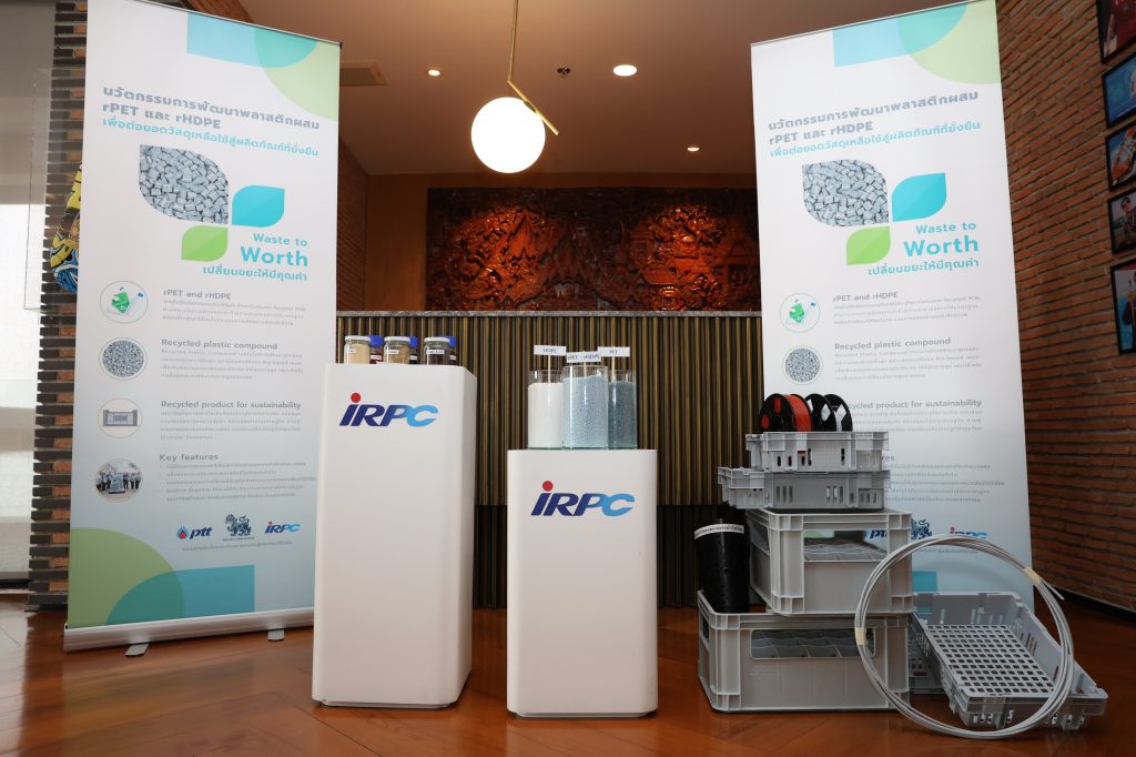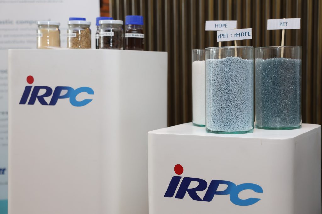 เมื่อเร็วๆนี้ บริษัท ปตท. จำกัด (มหาชน) บริษัท ไออาร์พีซี จำกัด (มหาชน) และ บริษัท บุญรอดบริวเวอรี่ จำกัด ร่วมแถลงความสำเร็จการพัฒนานวัตกรรมพลาสติกรีไซเคิลผสม (rPET และ rHDPE) เพื่อต่อยอดสู่ผลิตภัณฑ์ยั่งยืนตามแนวคิด Circular Economy ที่ลงนามความร่วมมือไปเมื่อเดือนพฤศจิกายน 2566 โดยมี นายประสงค์ อินทรหนองไผ่ ประธานเจ้าหน้าที่ปฏิบัติการกลุ่มธุรกิจปิโตรเลียมขั้นปลาย บริษัท ปตท. จำกัด (มหาชน) (ซ้าย) นายเทอดเกียรติ พร้อมมูล ประธานเจ้าหน้าที่บริหารและกรรมการผู้จัดการใหญ่ บริษัท ไออาร์พีซี จำกัด (มหาชน) (ขวา) และ นายปิติ ภิรมย์ภักดี กรรมการรองกรรมการผู้จัดการใหญ่อาวุโส และ ประธานเจ้าหน้าที่บริหาร กลุ่มบริษัทผลิต บริษัท บุญรอดบริวเวอรี่ จำกัด (กลาง) ร่วมพิธี
