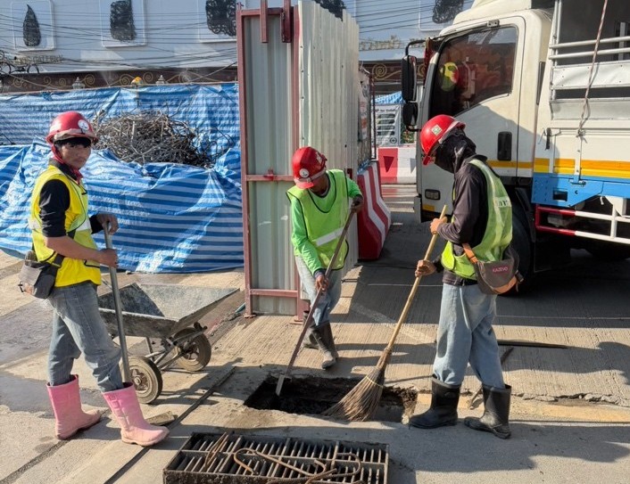 การรถไฟฟ้าขนส่งมวลชนแห่งประเทศไทย (รฟม.) ในฐานะหน่วยงานที่รับผิดชอบดำเนินการก่อสร้างโครงการรถไฟฟ้าสายสีส้ม ช่วงบางขุนนนท์ – ศูนย์วัฒนธรรมแห่งประเทศไทย ได้ติดตามและกำชับ ผู้รับจ้างก่อสร้างงานโยธา ให้ดำเนินการขุดลอกท่อระบายน้ำ และบ่อพัก ตลอดแนวเส้นทางโครงการฯ อย่างต่อเนื่อง เพื่อป้องกันเศษวัสดุอุดตันในแนวก่อสร้างรถไฟฟ้า และเพิ่มประสิทธิภาพการระบายน้ำให้ดียิ่งขึ้น