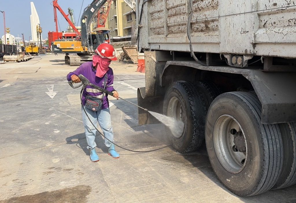 โดยในการลงพื้นที่ครั้งนี้ รฟม. ได้ตรวจสอบการปฏิบัติตามมาตรการป้องกันและแก้ไขผลกระทบสิ่งแวดล้อมในช่วงเวลากลางวัน ตามที่กำหนดไว้ในรายงานการประเมินผลกระทบสิ่งแวดล้อม (EIA) เช่น การปิดคลุมกองดิน กองทราย และเศษวัสดุก่อสร้าง ที่ก่อให้เกิดฝุ่นละอองในระหว่างรอการใช้งานหรือรอการขนย้าย การจัดเก็บขยะ การทำความสะอาดล้อรถก่อนนำรถออกจากพื้นที่ก่อสร้าง รวมถึงทำความสะอาดพื้นที่ก่อสร้างและถนนสาธารณะ การปิดคลุมรถที่ใช้ขนส่งวัสดุก่อสร้างด้วยผ้าใบ เพื่อกันวัสดุตกหล่นและป้องกันการฟุ้งกระจายของฝุ่นละออง การติดตั้งรั้วทึบสูง 2 เมตร และการติดตั้งไฟส่องสว่าง สัญญาณไฟบนรั้วตามแนวพื้นที่ก่อสร้าง