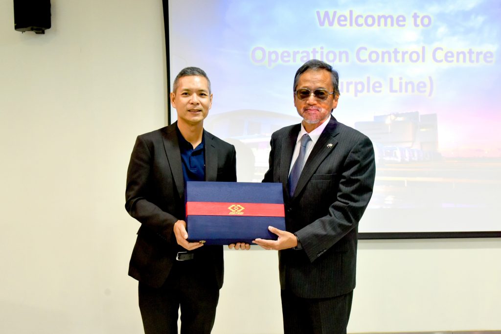 นายกาจผจญ อุดมธรรมภักดี ผู้ว่าการการรถไฟฟ้าขนส่งมวลชนแห่งประเทศไทย (รฟม.) ให้การต้อนรับ Mr. OTAKA Masato, Ambassador Extraordinary and Plenipotentiary of Japan to the Kingdom of Thailand และผู้แทนจากองค์การความร่วมมือระหว่างประเทศของญี่ปุ่น (JICA) เนื่องในโอกาสเข้าเยี่ยมชมศูนย์ซ่อมบำรุงรถไฟฟ้า สถานีคลองบางไผ่ของรถไฟฟ้ามหานคร สายฉลองรัชธรรม (MRT สายสีม่วง) ในโอกาสนี้ นายวิทยา พันธุ์มงคล รองผู้ว่าการ (ปฏิบัติการ) รฟม. ได้บรรยายพร้อมนำคณะเยี่ยมชมศูนย์ควบคุมการปฏิบัติการ และโรงซ่อมบำรุงรถไฟฟ้า จากนั้นนำคณะทดลองโดยสารรถไฟฟ้า MRT สายสีม่วง