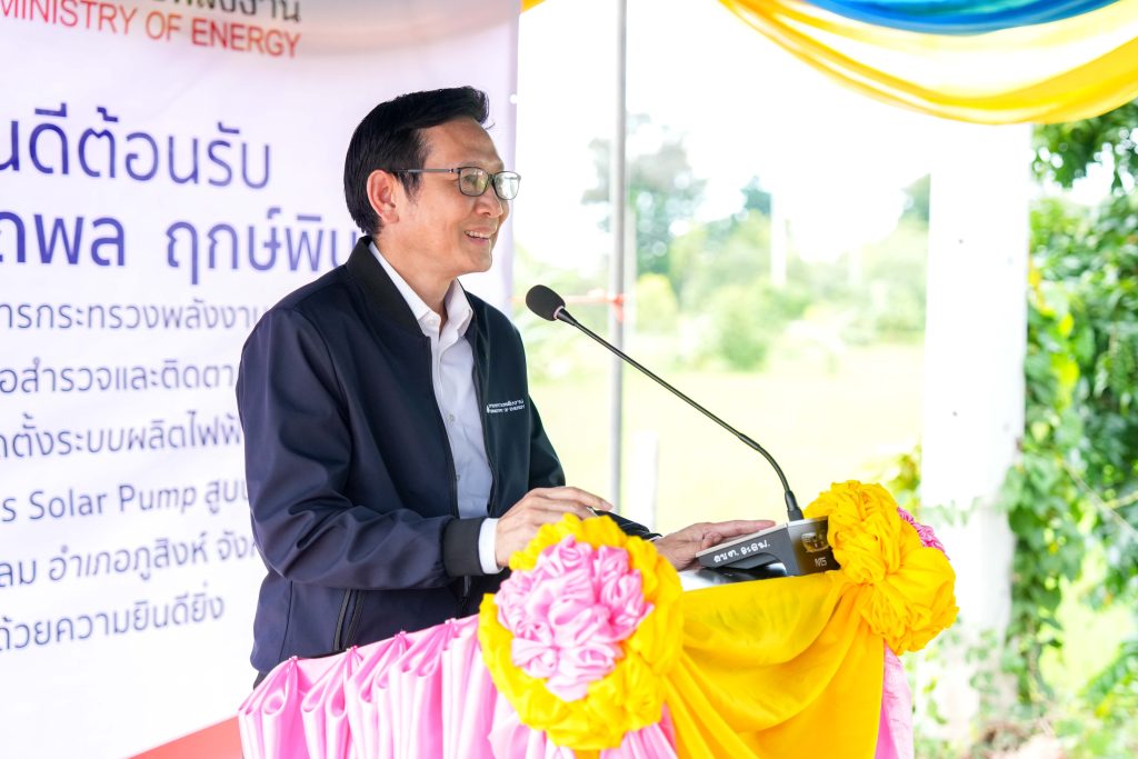 “การลงพื้นที่ จ.ศรีสะเกษ ในวันนี้ ผมได้เห็นถึงความเข้มแข็งของประชาชนในพื้นที่ แม้ว่าสถานการณ์ ตามแนวชายแดนยังไม่คลี่คลาย แต่กระทรวงพลังงานขอยืนยันว่า จะอยู่เคียงข้างประชาชน สร้างความมั่นคง ด้านพลังงาน รวมทั้งสนับสนุนระบบโซลาร์เซลล์ให้กับทหารตามแนวชายแดน ซึ่งถือเป็นกำลังหลักสำคัญในการปกป้องอธิปไตยของชาติ อีกทั้งการดูแลความปลอดภัยและความพร้อมให้บริการในสถานีบริการน้ำมันเพื่อไม่ให้เกิดผลกระทบกับประชาชน ในส่วนของการลงพื้นที่เพื่อเตรียมติดตั้งระบบโซลาร์สูบน้ำในหนองละหารต.ละลม อ.ภูสิงห์ ซึ่งเป็นพื้นที่ที่เกษตรกรได้รับความเดือดร้อนจากปัญหาแหล่งน้ำทำการเกษตรในฤดูร้อน ระบบสูบน้ำจากพลังงานแสงอาทิตย์ ก็จะเข้ามาช่วยแก้ปัญหา สามารถช่วยให้เกษตรกรที่ปลูกข้าวและพืช ครอบคลุมพื้นที่
