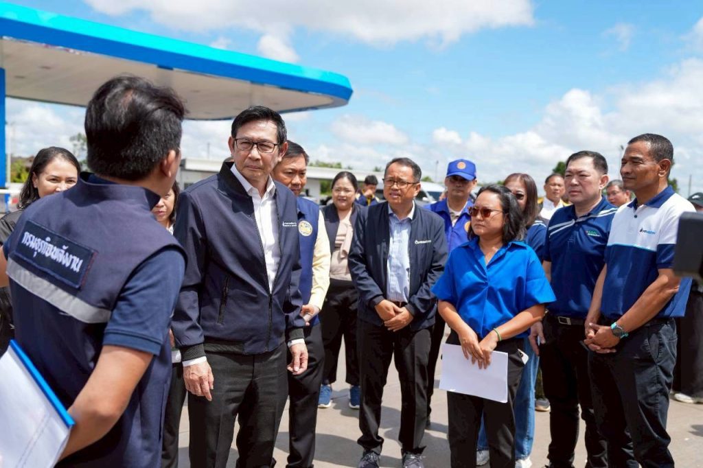 จากนั้นได้ตรวจเยี่ยมสถานีบริการน้ำมัน ปตท. และร้านสะดวกซื้อบ้านผือ อ.กันทรลักษ์ จ.ศรีสะเกษ หลังจากได้รับการซ่อมแซมและกลับมาเปิดให้บริการตามปกติอีกครั้งหลังจากที่ได้รับความเสียหายอย่างหนักจากการสู้รบระหว่างไทย – กัมพูชา โดยได้พูดคุยและให้กำลังใจเจ้าของสถานีบริการ ทั้งนี้ ได้เน้นย้ำถึงมาตรการรักษาความปลอดภัยให้แก่แหล่งจัดเก็บและจุดจำหน่ายน้ำมันเชื้อเพลิงในพื้นที่อ่อนไหว เพื่อเตรียมการและบรรเทาความรุนแรงไม่ให้เกิดขึ้นอีก