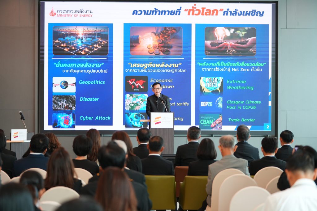 นายอรรถพล ฤกษ์พิบูลย์ รัฐมนตรีว่าการกระทรวงพลังงาน ประธานกล่าวเปิดงานสัมมนาและปาฐกถาในหัวข้อ “ความท้าทายพลังงานไทย เปลี่ยนผ่านอย่างไรให้ยั่งยืน” โดยระบุว่า ประเทศไทยกำลังเผชิญกับความท้าทายครั้งใหญ่ ทั้งจากความไม่มั่นคงทางพลังงานระดับโลก ภัยคุกคามทางไซเบอร์ และแรงกดดันจากการเร่งปรับเป้าหมาย Net Zero ให้เร็วขึ้นถึง 15 ปี จากปี 2065 เป็นปี 2050 เพื่อตอบโจทย์นี้ กระทรวงพลังงานจึงได้นำเสนอนโยบาย Quick Big Win ด้านพลังงาน ผ่านโครงการต่างๆ เพื่อพัฒนาโครงสร้างพื้นฐานด้านพลังงานให้รองรับการเปลี่ยนผ่านและสร้างความยั่งยืนในระยะยาว ผ่านมาตรการต่างๆ ซึ่งจะนำไปสู่การลงทุนครั้งใหญ่กว่า 1 ล้านล้านบาท และทำให้ประเทศไทยบรรลุเป้าหมาย Net Zero ในปี 2050 ได้อย่างมั่นคงและยั่งยืน