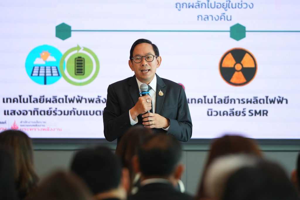 -“การจัดทำแผนพัฒนากำลังผลิตไฟฟ้า(PDP) ฉบับใหม่” ซึ่งได้จัดตั้งคณะกรรมการชุดใหม่ขึ้นมาดำเนินการ พร้อมสั่งการให้ดำเนินการจัดทำแผนแล้วเสร็จภายใน 3 เดือน หรือเสร็จสิ้นประมาณเดือน ม.ค.2569 โดยแผนPDP ฉบับใหม่ต้องตอบโจทย์เป้าหมาย Net Zero Emission 2050 ซึ่งอาศัยหลายปัจจัย ทั้งการขับเคลื่อนพลังงานสะอาด การสร้างสมดุลพลังงานเสถียร ดูเรื่องเทคโนโลยีพลังงานใหม่ๆ เช่น ไฮโดรเจน – แอมโมเนีย ที่ได้ประกาศเป็นเชื้อเพลิงแล้วซึ่งต่อไปจะมีมาตรการออกมารองรับการขนส่ง และมาตรฐานความปลอดภัย นอกจากนี้ยังศึกษาเรื่องของเทคโนโลยี SMR ด้วย