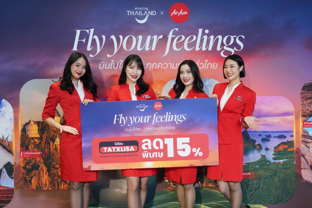 โดยไฮไลต์แคมเปญ “FLY YOUR FEELINGS บินไปให้สุด..ทุกความรู้สึกทั่วไทย”จากแอร์เอเชีย นั้นเป็นการมอบส่วนลดพิเศษเพียงระบุโค้ด “TATXLISA” เพื่อรับสิทธิ์ ลด 15% สำหรับ 8 เส้นทางบินตามรอยสื่อโฆษณาลิซ่า ได้เเก่ เชียงใหม่ เชียงราย ลำปาง น่าน สุราษฎร์ธานี อุดรธานี อุบลราชธานี และพังงา (บินลงภูเก็ต) และลด 10% สำหรับเส้นทางบินในประเทศอื่นๆ จองได้ตั้งแต่ 1 มีนาคม – 31 พฤษภาคม 2569 เดินทาง 15 มีนาคม – 30 กันยายน 2569 ผ่านแอปพลิเคชัน AirAsia MOVE