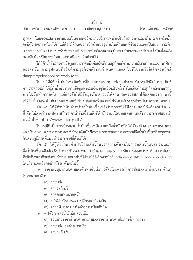 4. โรงกลั่นต้องรายงานต้นทุนการผลิต