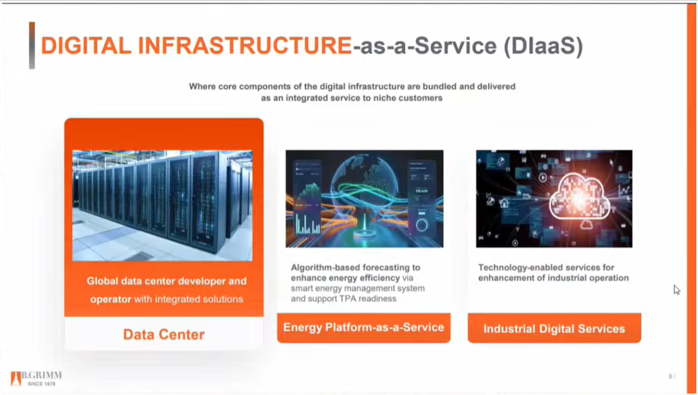 2. Energy Platform-as-a-Service เป็นแพลตฟอร์มด้านพลังงานรูปแบบใหม่ เป็นศูนย์กลางบริหารจัดการพลังงาน รองรับตลาดพลังงานยุคใหม่ ซึ่งบริษัทมีการเตรียมความพร้อมในหลายด้าน อาทิ สมาร์ทกริด และเทคโนโลยี AI เป็นต้น เพื่อสร้างแพลตฟอร์มที่ช่วยเพิ่มความยืดหยุ่นระบบไฟฟ้า ลดต้นทุนสู่การเปลี่ยนผ่านทางพลังงาน