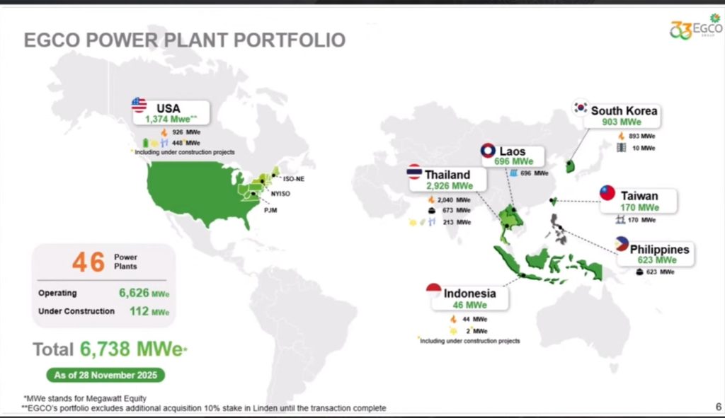 การเข้าซื้อหุ้นเพิ่ม 10% โรงไฟฟ้า Linden Cogen แตะ 38% ซึ่งจะทำให้รับรู้รายได้เต็มปีในปี 2569 รวมถึงรับรู้รายได้เต็มปี หลังจากการซ่อมบำรุงตามแผนของโรงไฟฟ้า Quezon ในฟิลิปปินส์ เพื่อเตรียมพร้อมสำหรับการเดินเครื่องเชิงพาณิชย์ (COD) ภายใต้สัญญา PSA ฉบับใหม่ ซึ่งเริ่ม COD เมื่อวันที่ 26 ตุลาคม 2568 ที่ผ่านมาตลอดจนการเติบโตตามแผนขยายการลงทุนในธุรกิจสาธารณูปโภคและโครงสร้างพื้นฐาน CDI Group ในอินโดนีเซีย ที่ยังเดินหน้าต่อเนื่อง