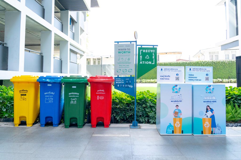การเดินทางของขยะพลาสติกเริ่มต้นที่การคัดแยกโดยลูกบ้านใน T77 Community คอมมูนิตี้สีเขียวที่สมบูรณ์แบบที่สุดใจกลางเมือง ซึ่งเป็นต้นแบบของชุมชนแห่งการอยู่อาศัยที่ยั่งยืนจากแสนสิริและ The Society Phuket โซเชียล สเปซ แห่งแรกของแสนสิริในภูเก็ตใจกลางย่านบางเทา – เชิงทะเล โดยมี พลัส พร็อพเพอร์ตี้ ผู้เชี่ยวชาญด้านการบริหารจัดการที่อยู่อาศัย ทำหน้าที่จัดเตรียมระบบรับทิ้งเพื่อแยกพลาสติกใช้แล้ว (ทั้งขวดพลาสติกใสและขุ่น) ซึ่งขั้นตอนนี้ไม่ใช่แค่การทิ้งขยะเพียงเท่านั้น แต่เป็นการสร้างความตระหนักรู้ ที่แสนสิริมุ่งมั่นส่งเสริมให้ลูกบ้านเห็นถึงคุณค่าของการคัดแยกขยะ และเห็นถึงประโยชน์ของการหมุนเวียนขยะกลับมาเป็นทรัพยากรใหม่อย่างเป็นรูปธรรม
