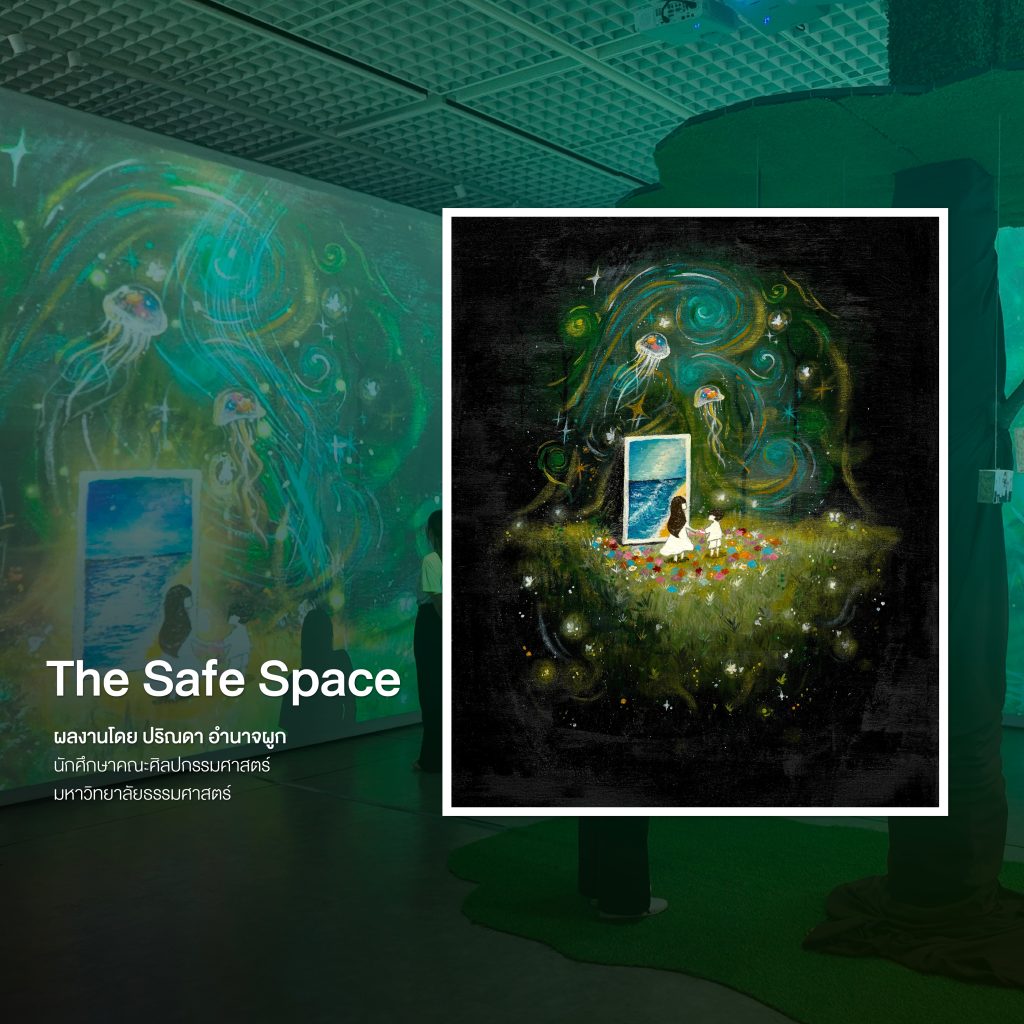 3) “The Safe Space” ผลงาน “ปริณดา อำนาจผูก” นักศึกษาชั้นปีที่ 4 คณะศิลปกรรมศาสตร์ มหาวิทยาลัยธรรมศาสตร์ ที่เล่าเรื่องราวความรัก ความผูกพันระหว่าง “น้องปูนปั้น – ด.ช.ธีรโชติ แก้วเผือก” และคุณแม่ ก่อให้เกิดเป็นพลังพาลูกก้าวผ่านการเยียวยา จนนำไปสู่อนาคตที่งดงาม