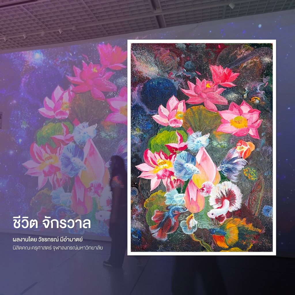 4) “ชีวิต จักรวาล” ผลงาน “วัชรกรณ์ มีอำมาตย์” นิสิตชั้นปีที่ 4 คณะครุศาสตร์ จุฬาลงกรณ์มหาวิทยาลัย ที่ได้แรงบันดาลใจจาก “น้องหยก – ด.ช.ธนทรัพย์ อ่อนน้อม” สะท้อนการมองโลกในแง่บวก และการมีจิตใจที่แข็งแกร่ง พร้อมจะเติบโตขึ้นไปในสังคมอย่างมั่นคง