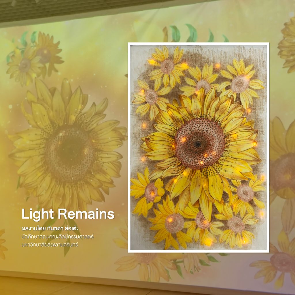 8) “Light Remains” ผลงาน “กันซดา ล่อเต๊ะ” นักศึกษาชั้นปีที่ 1 คณะศิลปกรรมศาสตร์ มหาวิทยาลัยสงขลานครินทร์ ที่สะท้อนตัวตนและความงดงามของ “น้องมายด์ – น.ส.ญาณิศา นาคสิทธิ์” ที่สดใส ร่าเริง พร้อมจะส่องแสงสว่างและให้ความอบอุ่นแก่คนรอบข้าง