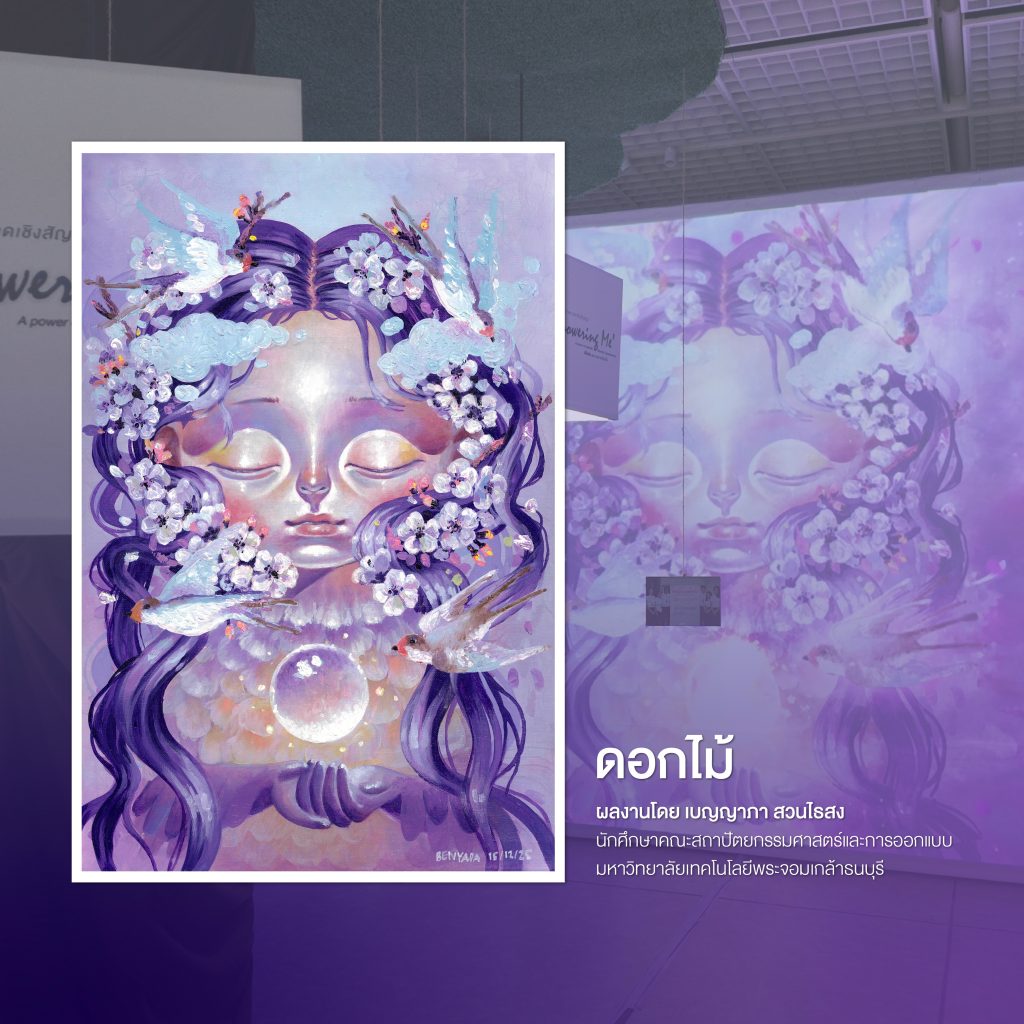 และ 10) “ดอกไม้” ผลงาน “เบญญาภา สวนไธสง” นักศึกษาชั้นปีที่ 1 คณะสถาปัตยกรรมศาสตร์และการออกแบบ มหาวิทยาลัยเทคโนโลยีพระจอมเกล้าธนบุรี สะท้อนพลังบวกของ “น้องเอิร์น – ด.ญ.อุไรรัตน์ ขุนอินทร์” ที่ผลิบานอยู่ข้างในตัวตนของเธอ และพร้อมที่จะส่งต่อไปให้แก่ผู้อื่น