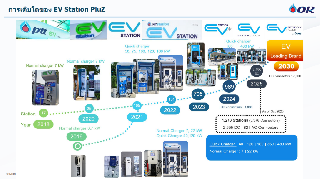 ปัจจุบัน OR มีสถานีชาร์จ EV Station PluZ กระจายทั่วประเทศ ในปี2568 OR มีจุดชาร์จ EVเพิ่มเป็น 3,300 จุดชาร์จ และเพิ่มเป็น 7,000 จุดชาร์จ ในปี2573 เพื่อให้ผู้ใช้รถ EV ในไทยไม่ต้องกังวลเรื่องการหาจุดชาร์จ ไม่ต้องซื้อรถสองคัน (EV และ ICE) ทำให้ทุกการเดินทางของคนไทยสะดวก ต่อเนื่อง และเป็นมิตรกับสิ่งแวดล้อม
