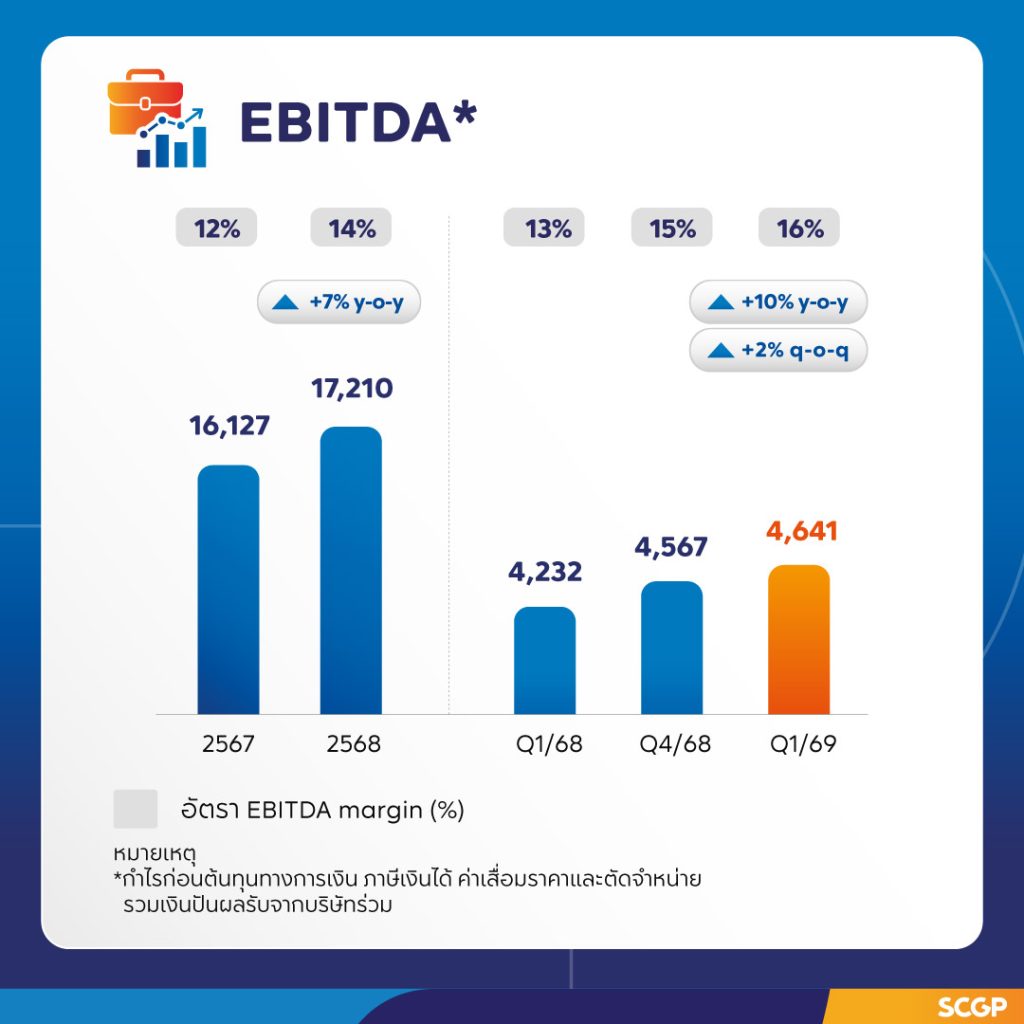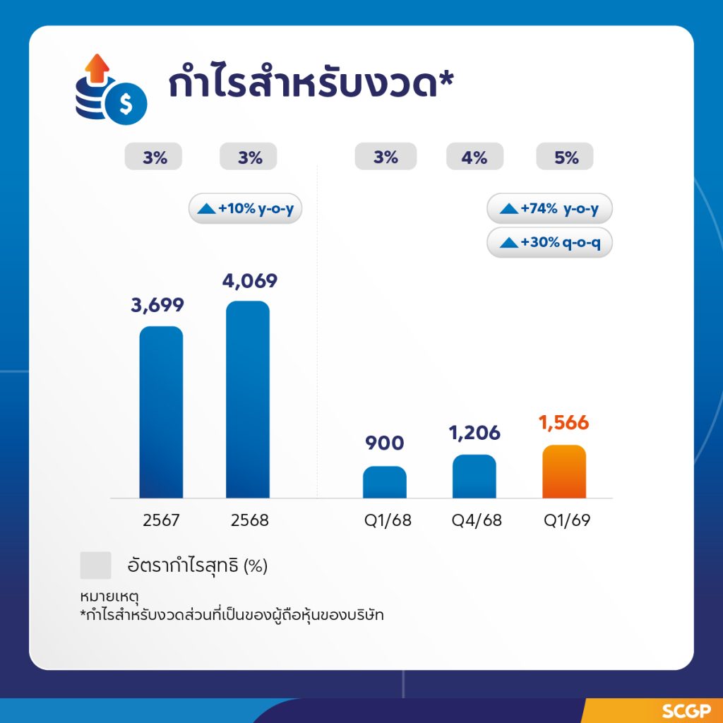 SCGP เร่งวางกลยุทธ์เชิงรุก ผลักดันผลงานไตรมาส 2 ปี69 รับมือเศรษฐกิจโลกผันผวน เดินหน้าบริหารความทางธุรกิจต่อเนื่อง ควบคู่กับการเพิ่มประสิทธิภาพการผลิตและการปรับการใช้พลังงานอย่างเหมาะสม พร้อมนำเสนอโซลูชันเพื่อตอบโจทย์ลูกค้า (Customer Centricity) เผย ผลงานไตรมาส 1 ปี69 กำไรเติบโต จากธุรกิจในอินโดนีเซียที่ฟื้นตัวจากการเพิ่มประสิทธิภาพการดำเนินงานและลดต้นทุน และจากแรงหนุนของการอุปโภคบริโภคในประเทศกลุ่มอาเซียน